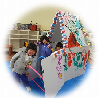 At our atelier, children can come to notice what they could not ever notice in everyday life by dynamic and creative activities which can never be experienced at school or by touching various materials.